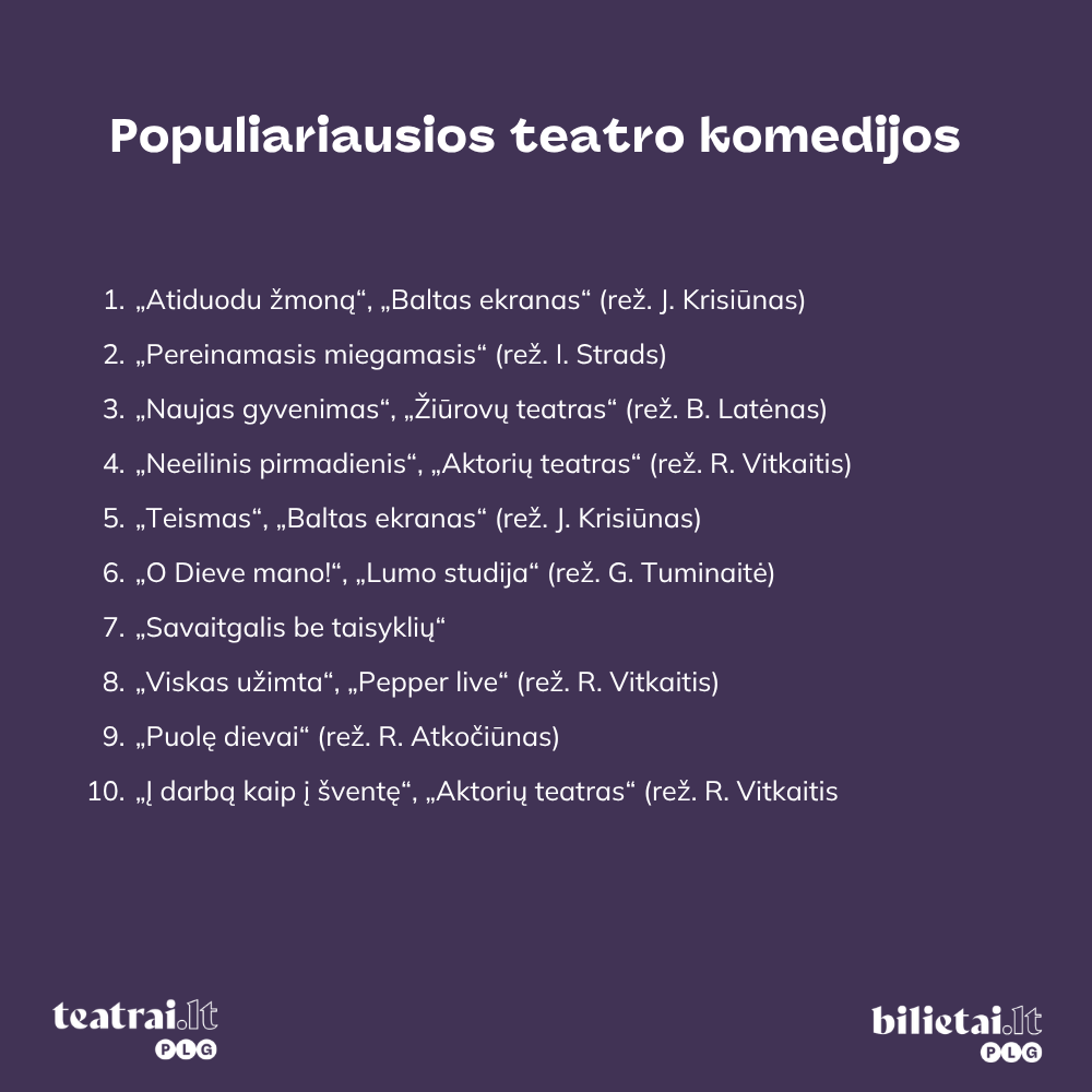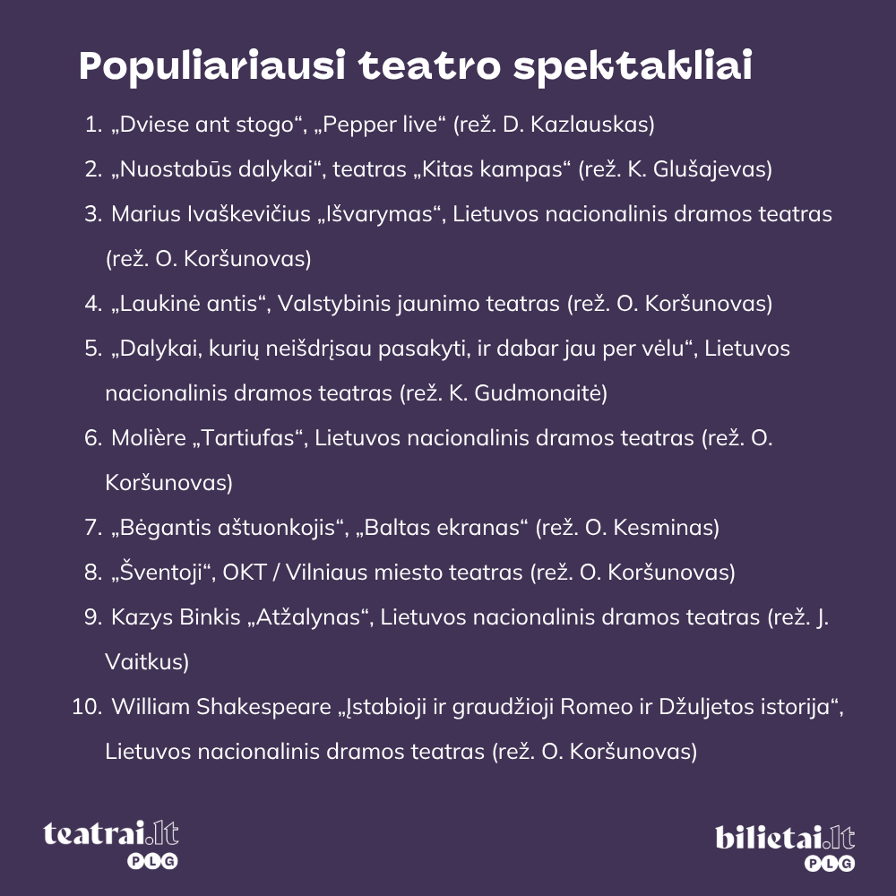 Remiantis „Bilietai.lt“ ir „Teatrai.lt“ duomenimis, per pastaruosius metus teatro renginiais domėjosi ir bilietus į spektaklius įsigijo beveik 900 tūkst. lankytojų. Tai patvirtina, kad teatras Lietuvoje išlieka viena stabiliausių ir nuosekliai augančių kultūros sričių.